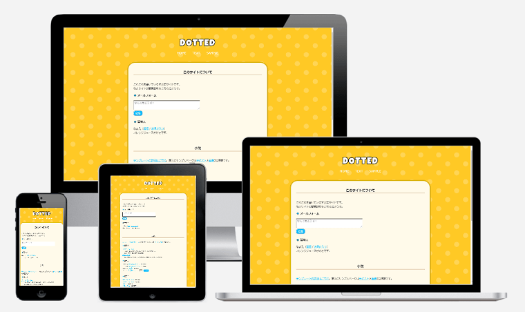 背景の水玉柄はCSSで描いています。すごいぞ、CSS! 画像ではないため、カラーコードを書き換えれば簡単に模様替えできます。